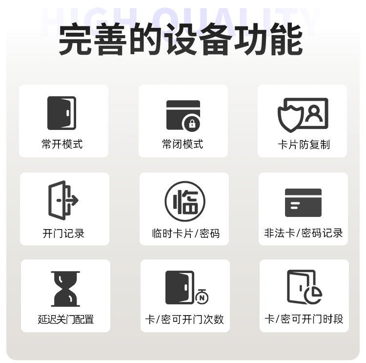 吴忠这款智能门锁提供室内门锁和防盗门锁两种选择,其中室内门锁尺寸为 2806521mm,适配 5050 锁体;防盗门锁尺寸为 3657021mm,适配 6068 锁体,可满足不同场景的安装需求。它采用铝合金一体成型搭配钢化玻璃面板打造,兼具坚固耐用的品质与简洁美观的视觉效果。门锁支持蓝牙无线通讯,解锁方式丰富多样,密码、卡片、蓝牙、钥匙四种方式随心选择,满足不同使用习惯与应急需求。其工作温度范围为 - 20~70℃,能适应多数地区的气候条件,采用碱性电池供电,安装更换便捷,是兼具安全性与实用性的门锁选择。